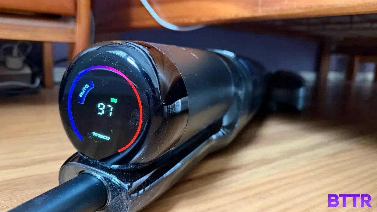 Battery life is the main compromise here. You'll get up to 25 minutes on eco mode, about 18 minutes on medium, and less than 10 minutes at full suction. But for hard floors in smaller to medium homes, it's more than adequate.