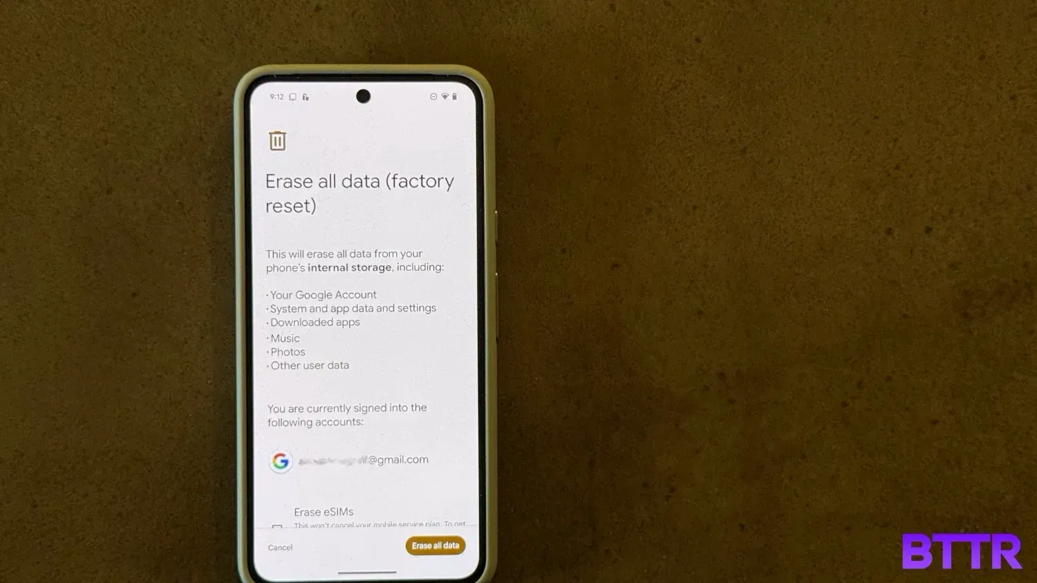 Once you hit that button, you'll see a page outlining everything that will be purged from your device. Don't worry about third-party apps being signed in – that will all get sorted during the deletion.