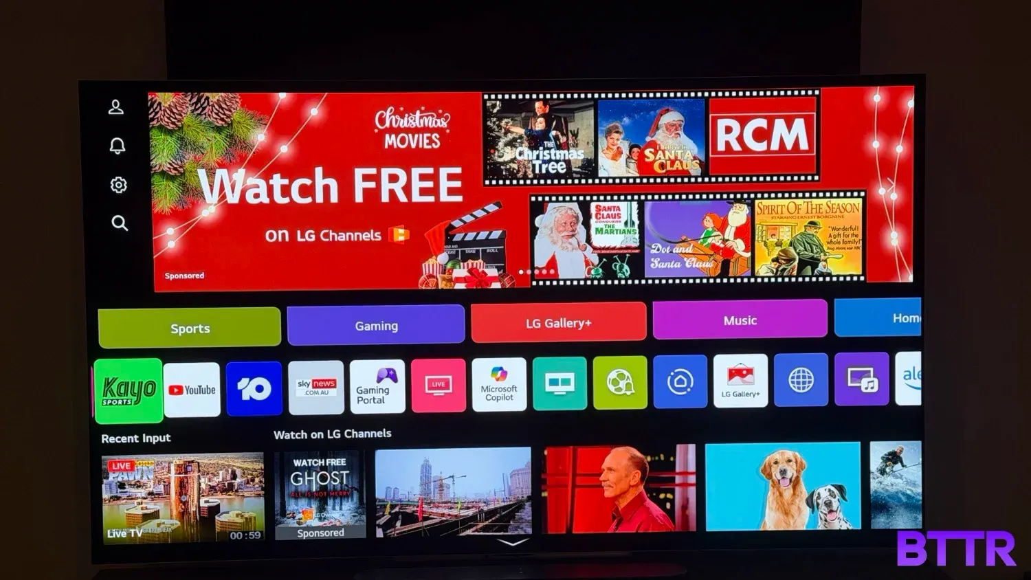 From the Home Screen, the top half of the screen is dedicated to ads. During my testing, it was limited to ads for LG’s channels and a tip on how to use the AI feature of the remote.