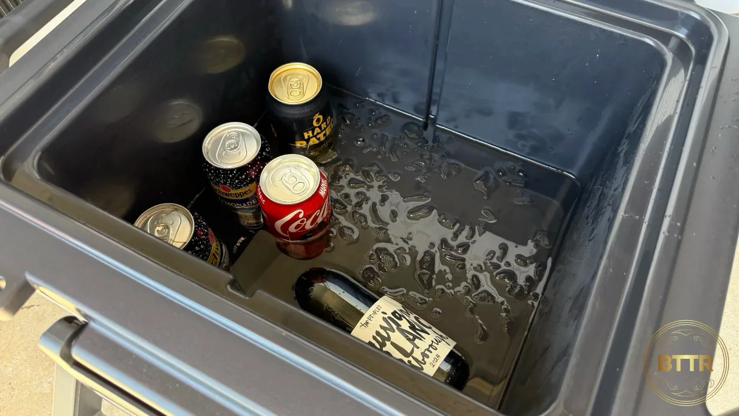 I tested the 28 Litre version, but there’s a 47 Litre version as well. The 28 Litre version is enough to hold uptown 26 cans with ice, or 48 cans with no ice.